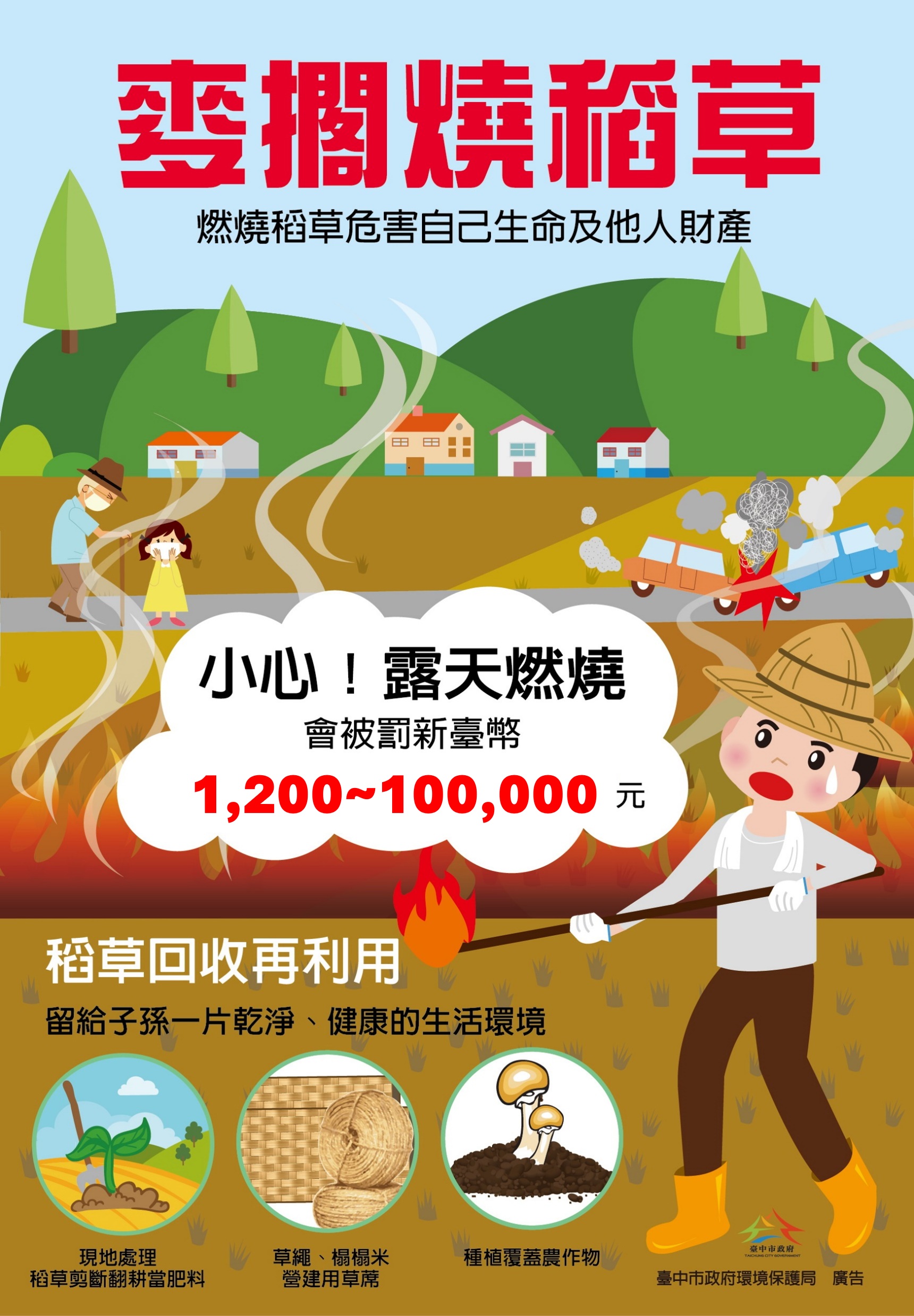 勿露天燃燒稻草、廢果樹枝條或垃圾廢棄物等行為