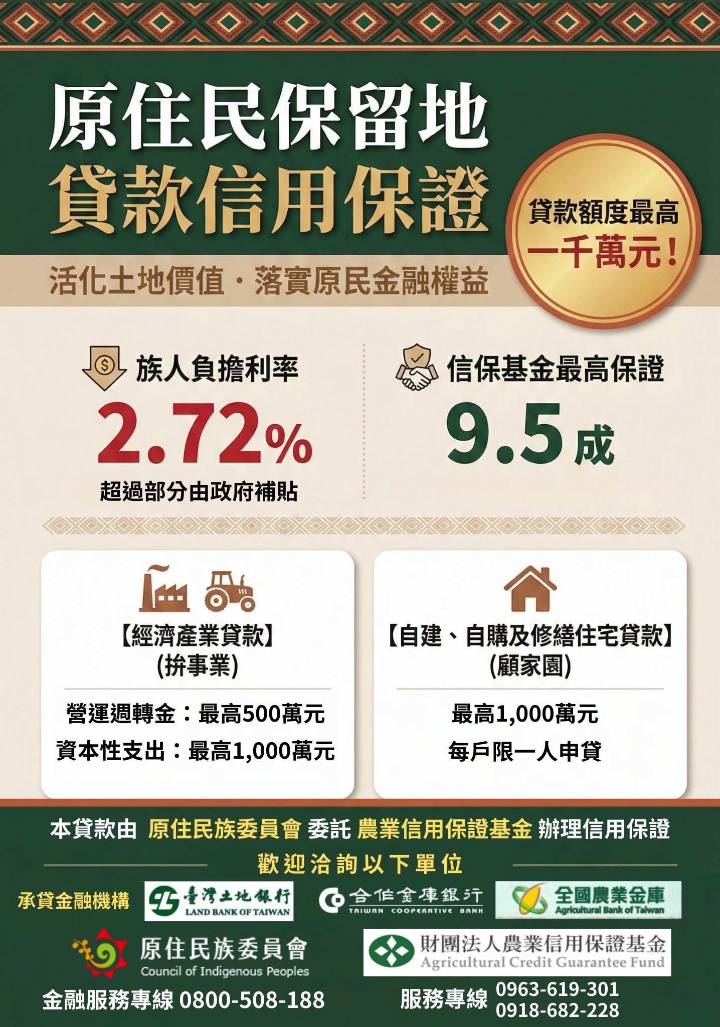 函轉原住民族委員會辦理「原住民保留地貸款信用保證業務」政策說明會