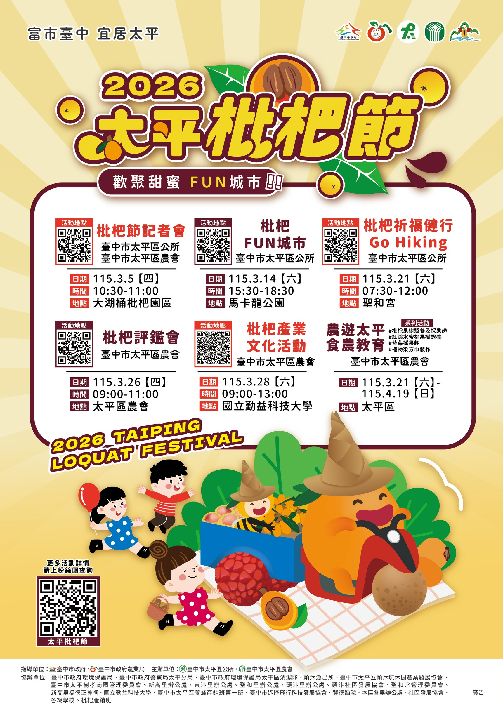 二、 詳細活動內容歡迎至「太平區公所」或「太平枇杷節」臉書粉絲團查詢。