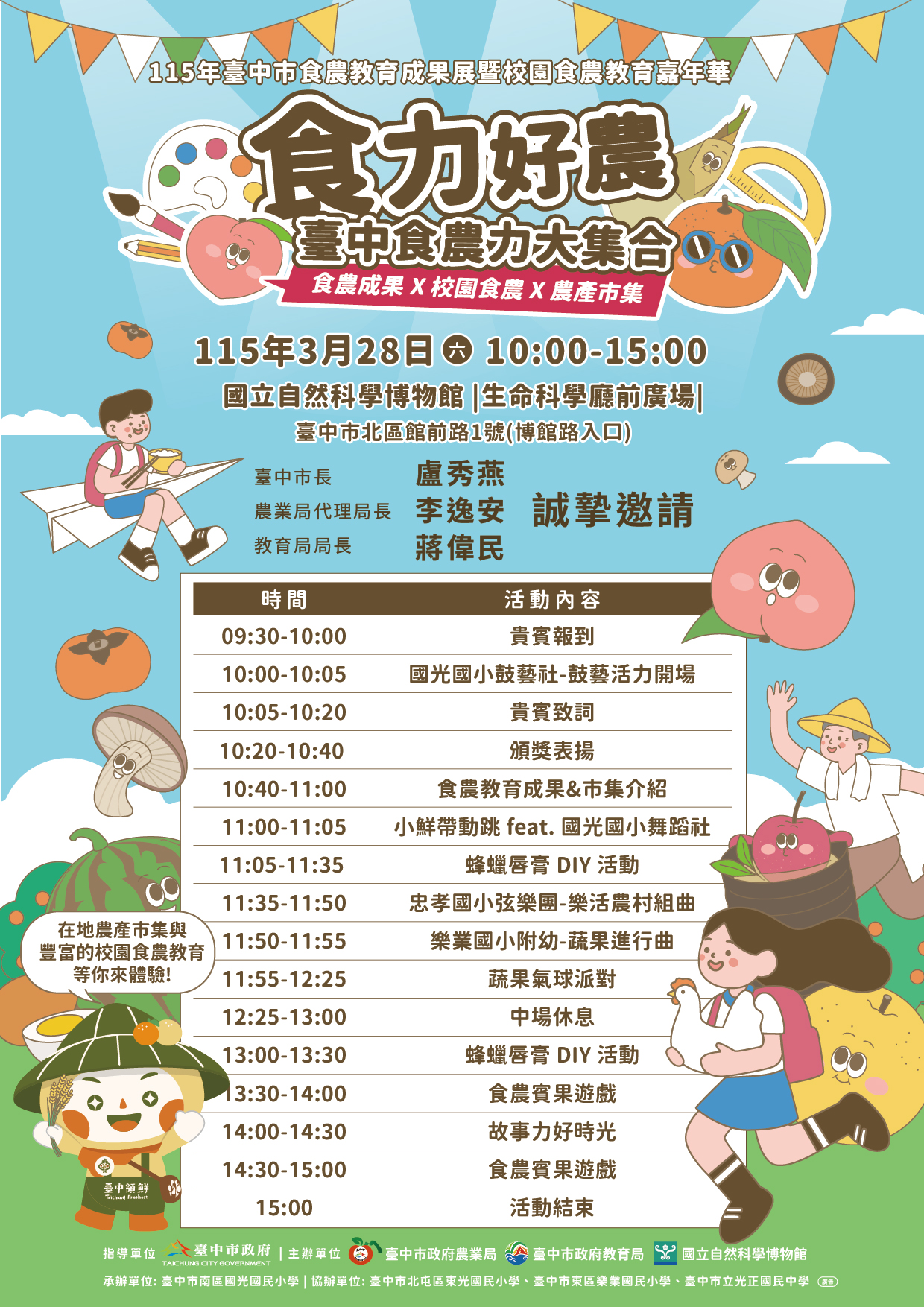轉知「115年臺中市食農教育成果展暨校園食農教育嘉年華」活動資訊